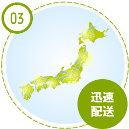 倉庫で保管し、無料配送地域は自社便による配送を行っているため、流通スピードが圧倒的に早く、 デリバリーサービスの質が高い点が特長です。東京・大阪等拠点エリアでは、即日または翌日届けも場合によっては可能です。お急ぎのお客さまは、お電話にてご相談ください。